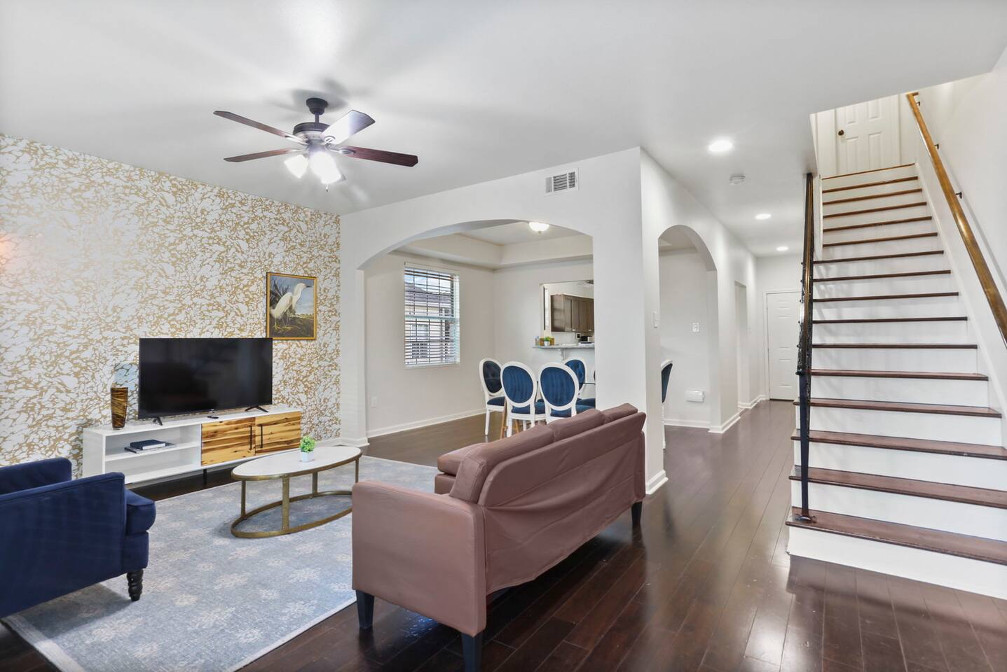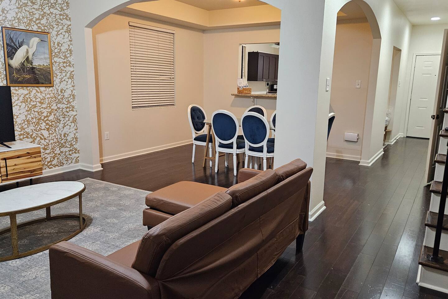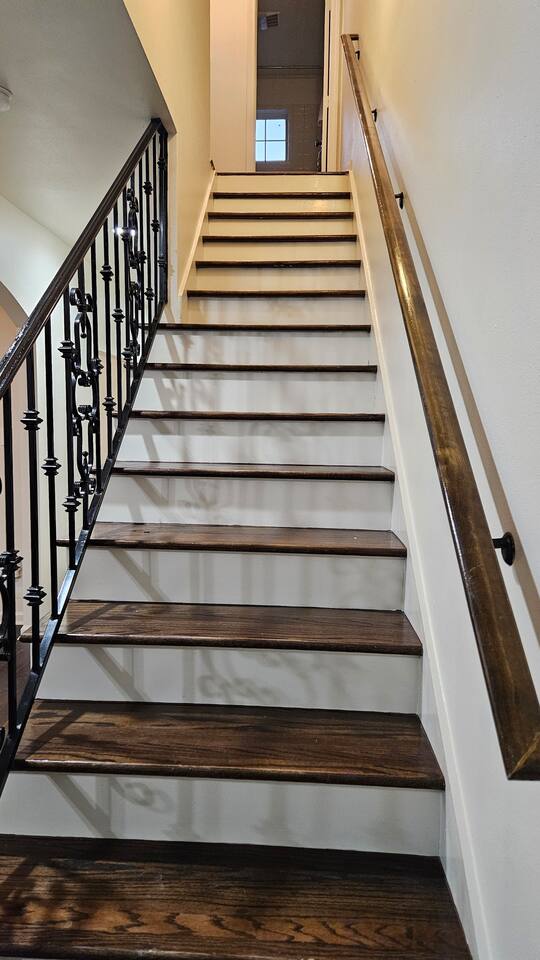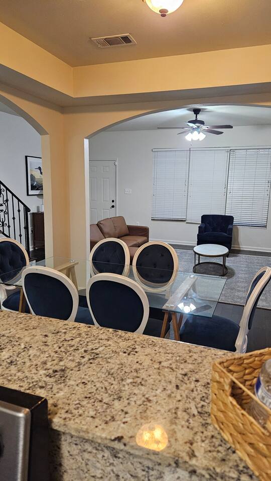 This is a 2-story townhome. It includes beautiful hardwood floors and a full kitchen and dining room. All 3 bedrooms, and 2 full bathrooms are located upstairs. The largest bedroom includes an attached private bathroom. The laundry room, including a washer and dryer, are also upstairs. There is a half-bathroom located on the 1st floor of the property. The property also has a private front porch and backyard. CHECK OUT OUR OTHER IDENTICAL LISTING HERE: https://www.airbnb.com/rooms/1335662459060489523?guests=1&adults=1&s=67&unique_share_id=59bb90d0-63a1-4cb4-b8ec-07baa67862a5