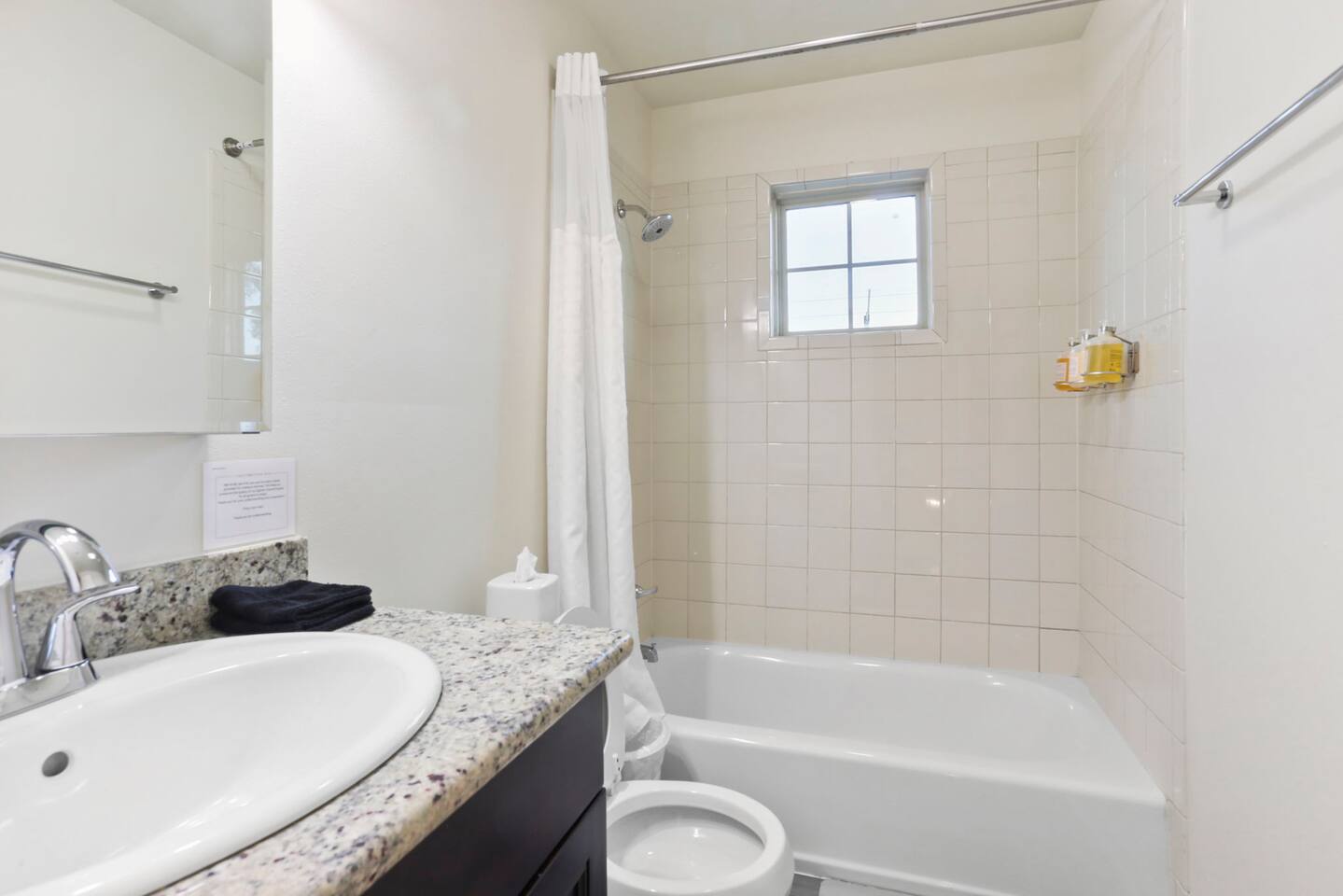 You will have access to the entire townhome; (3) three bedrooms, (2.5) two and a half baths and a fully equipped kitchen. The dining room is spacious and easily seats 6 adults. All of the bedrooms and full baths are on the second floor of the property. The largest bedroom has a private bathroom. There is a half bath located on the first floor of the property. Specialty toiletries, cleaning supplies, bottled water and items in the cabinets are available to guests. Cleaning supplies are provided, as are laundry detergent. Guests will also have access to a private porch as well as backyard/garden area.